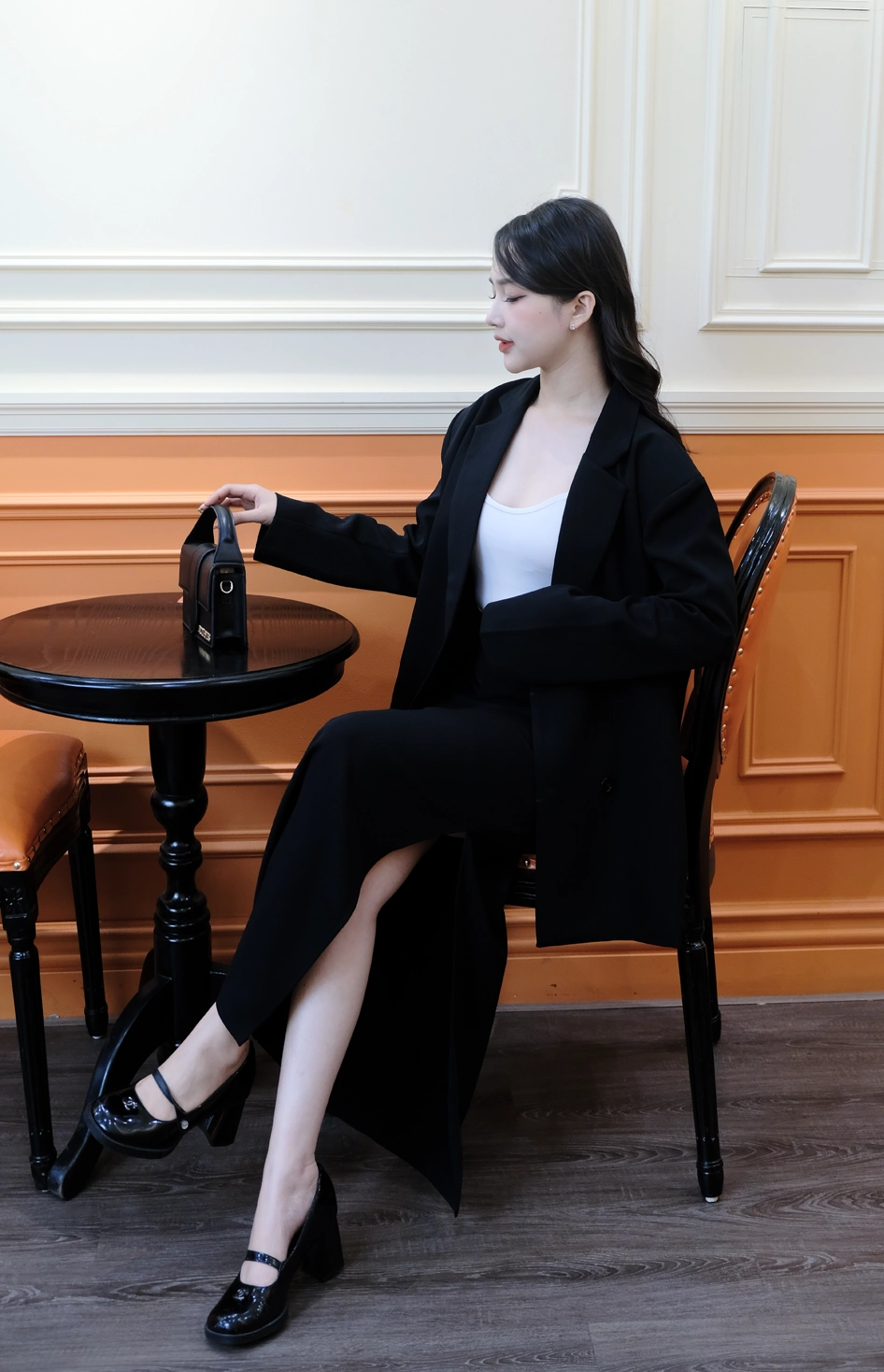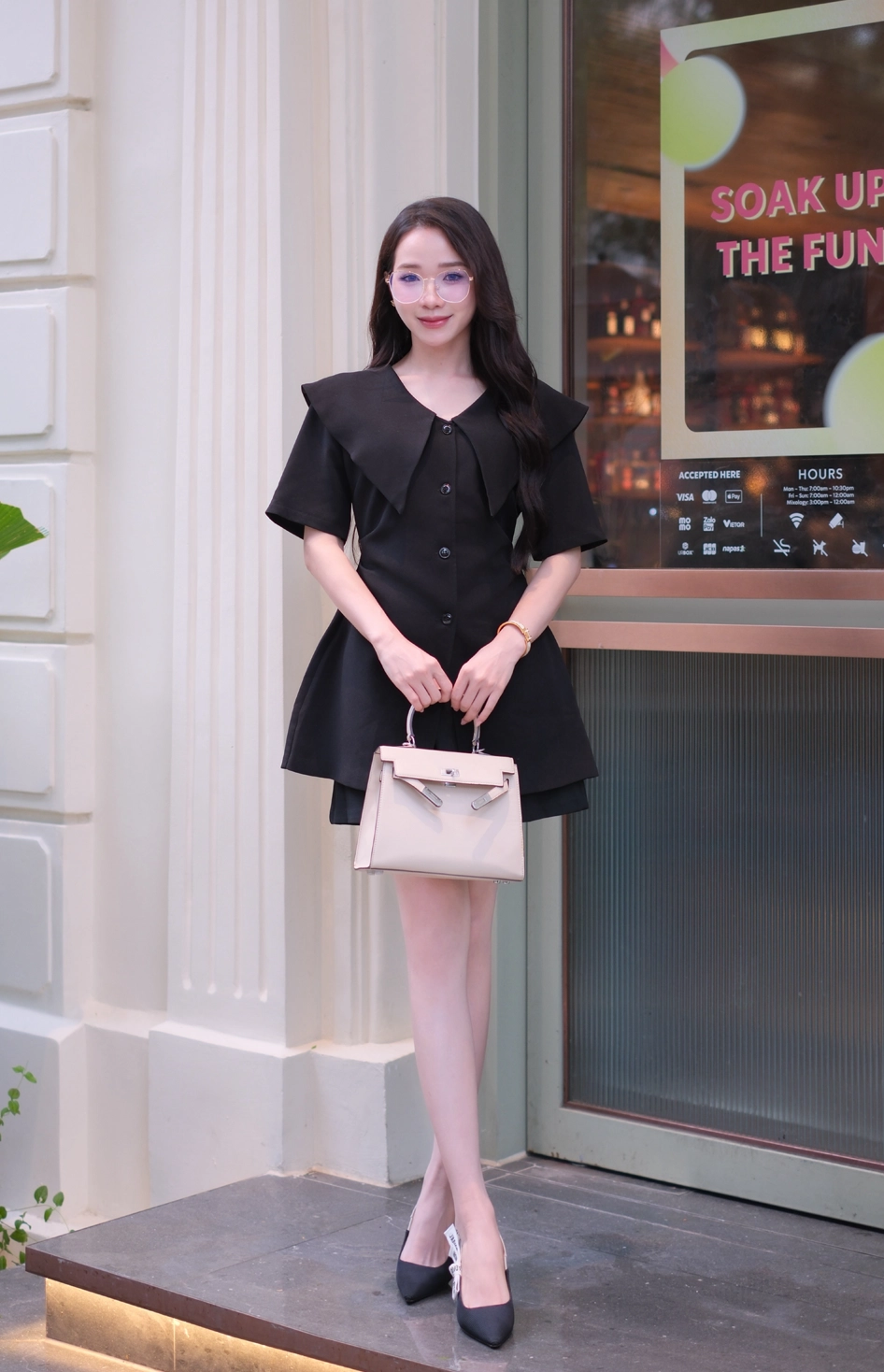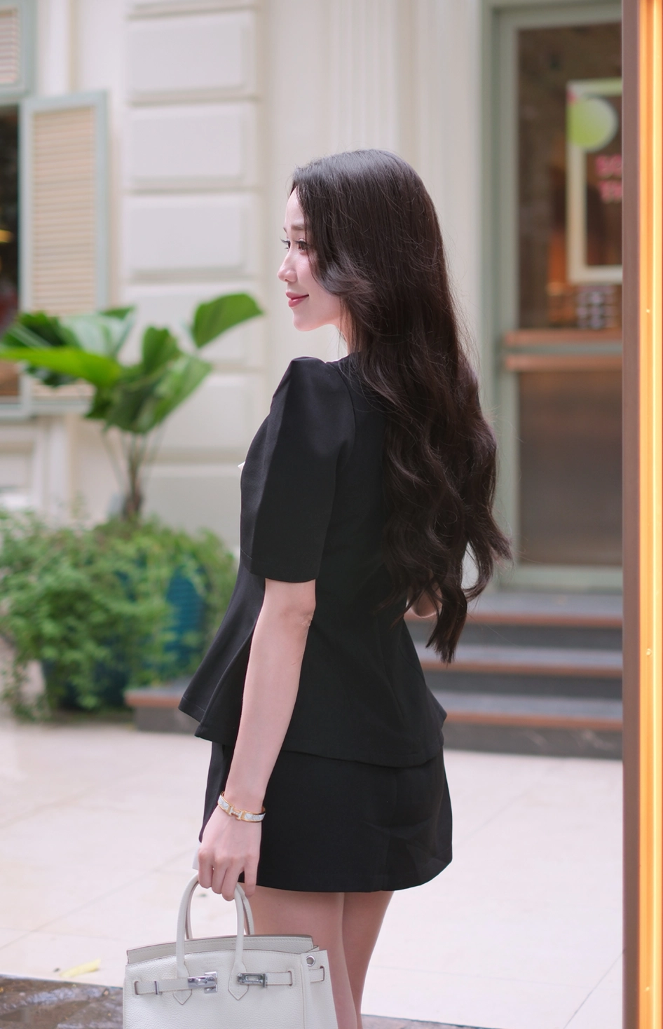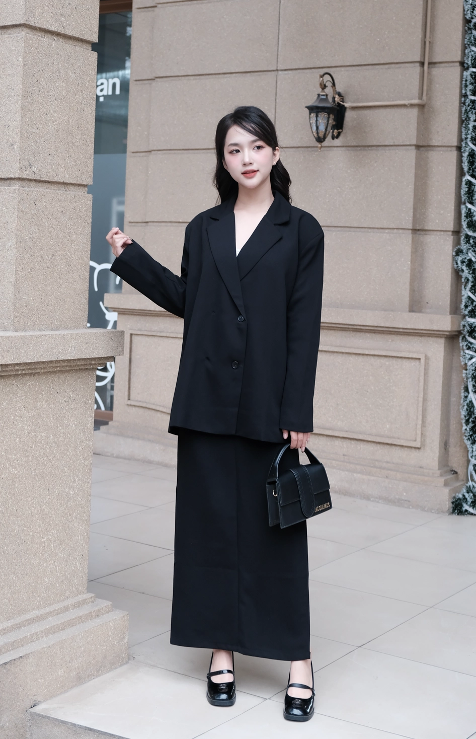 Set áo croptop cúc ngực + chân váy xòe bồng