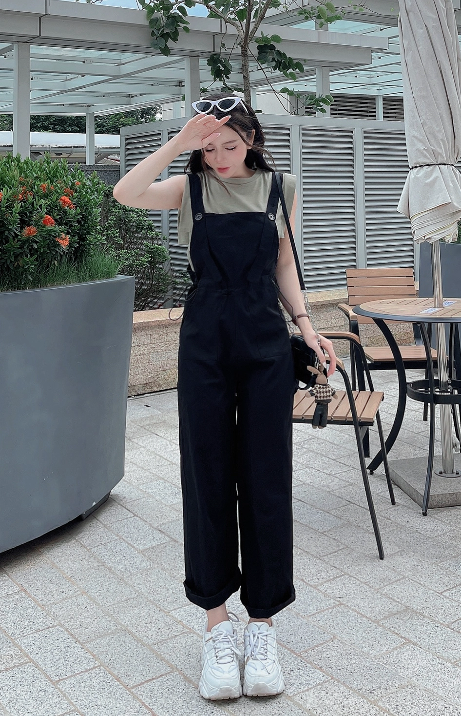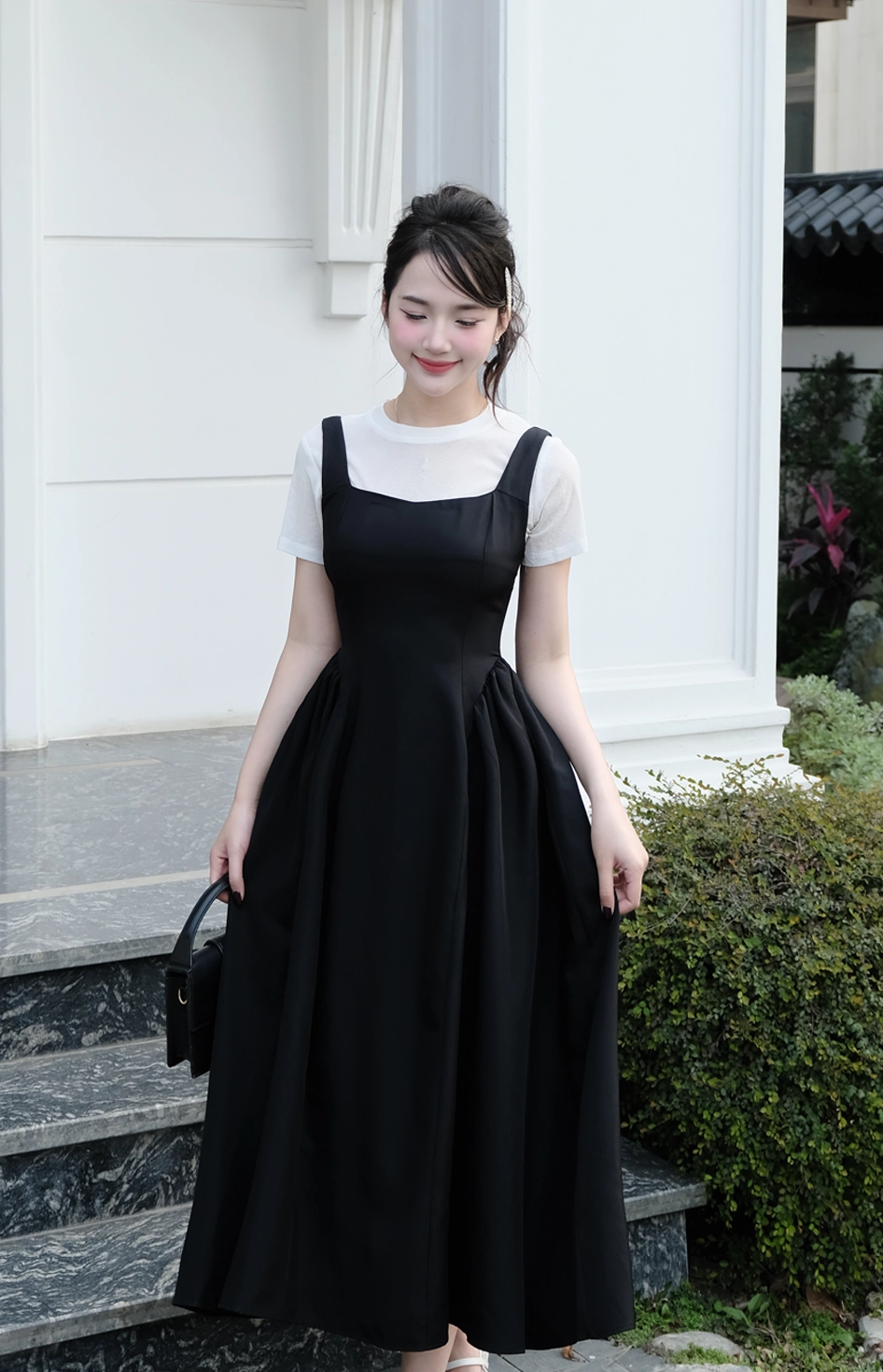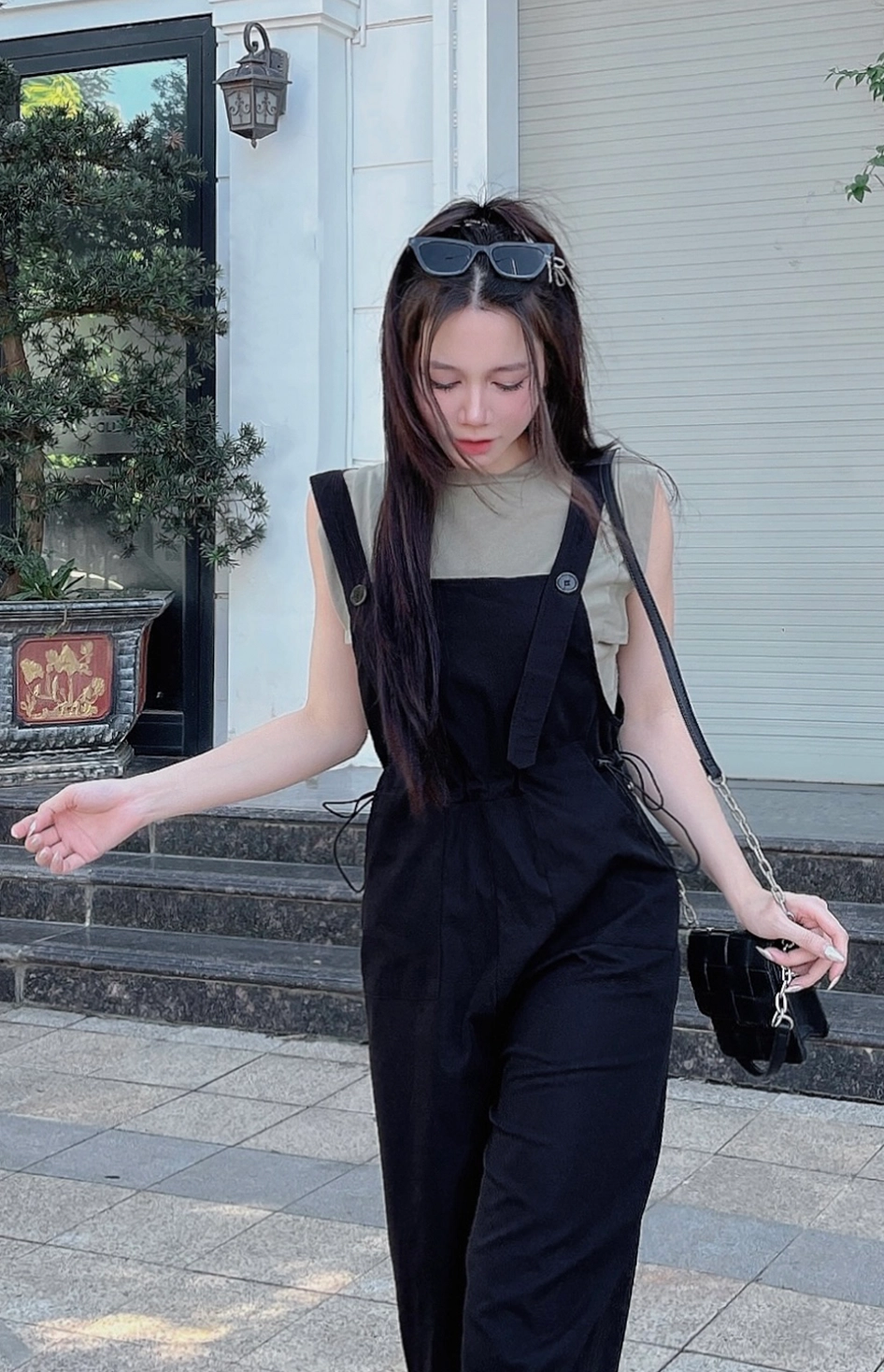Set váy yếm cổ V hai dây mảnh & áo ba lỗ dáng dài