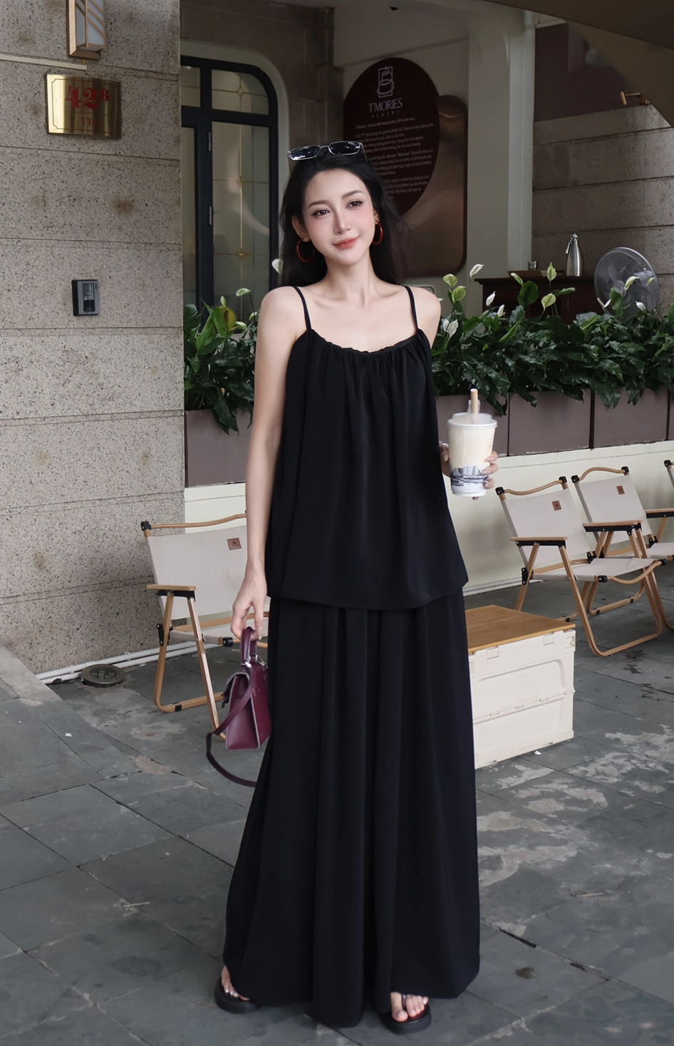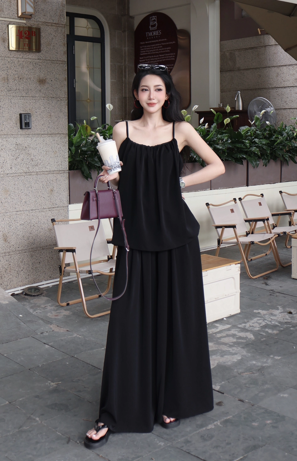 Set áo hai dây thắt lưng & quần suông dáng dài