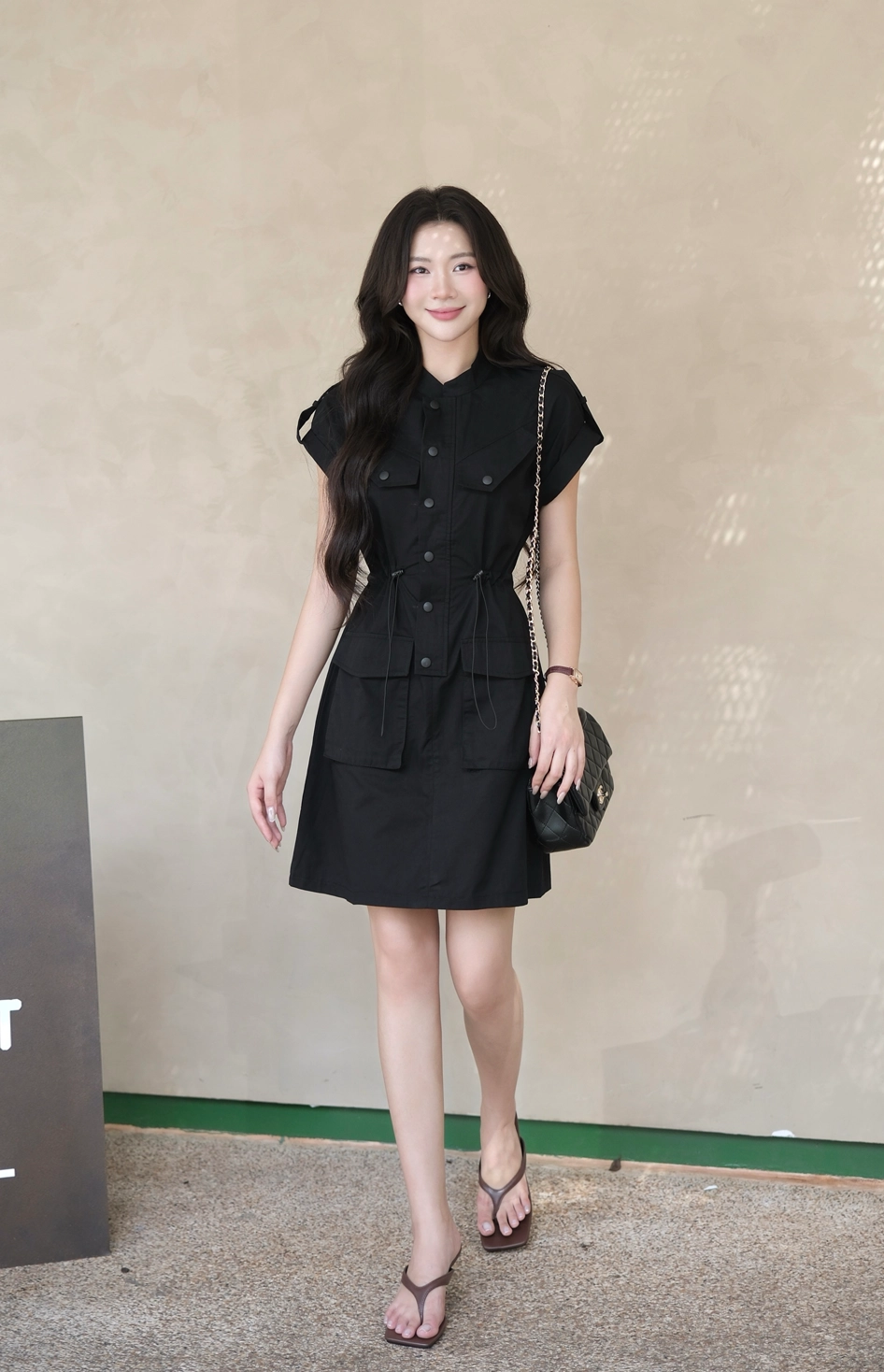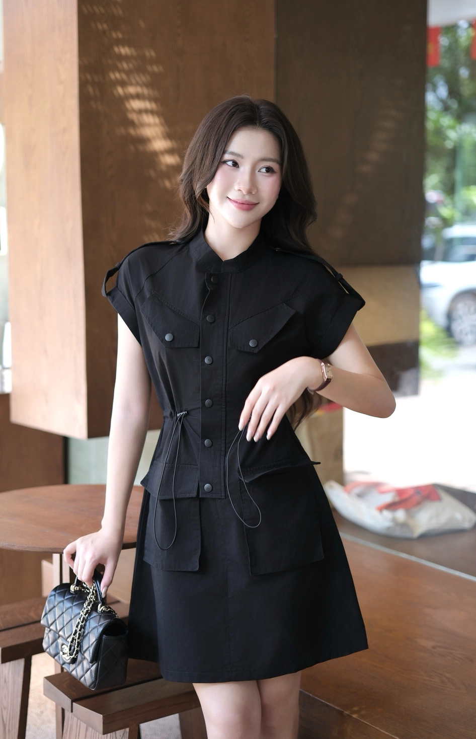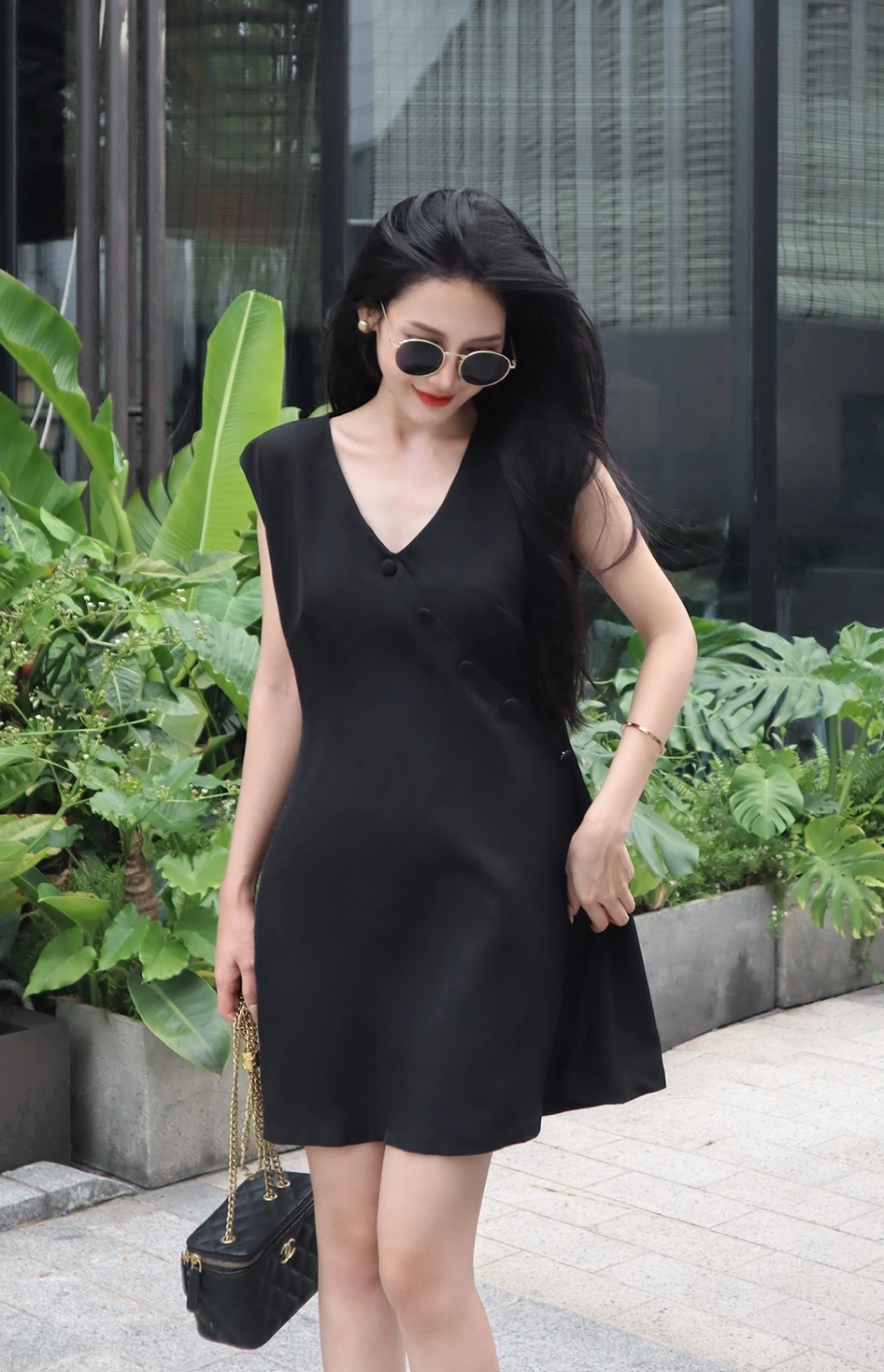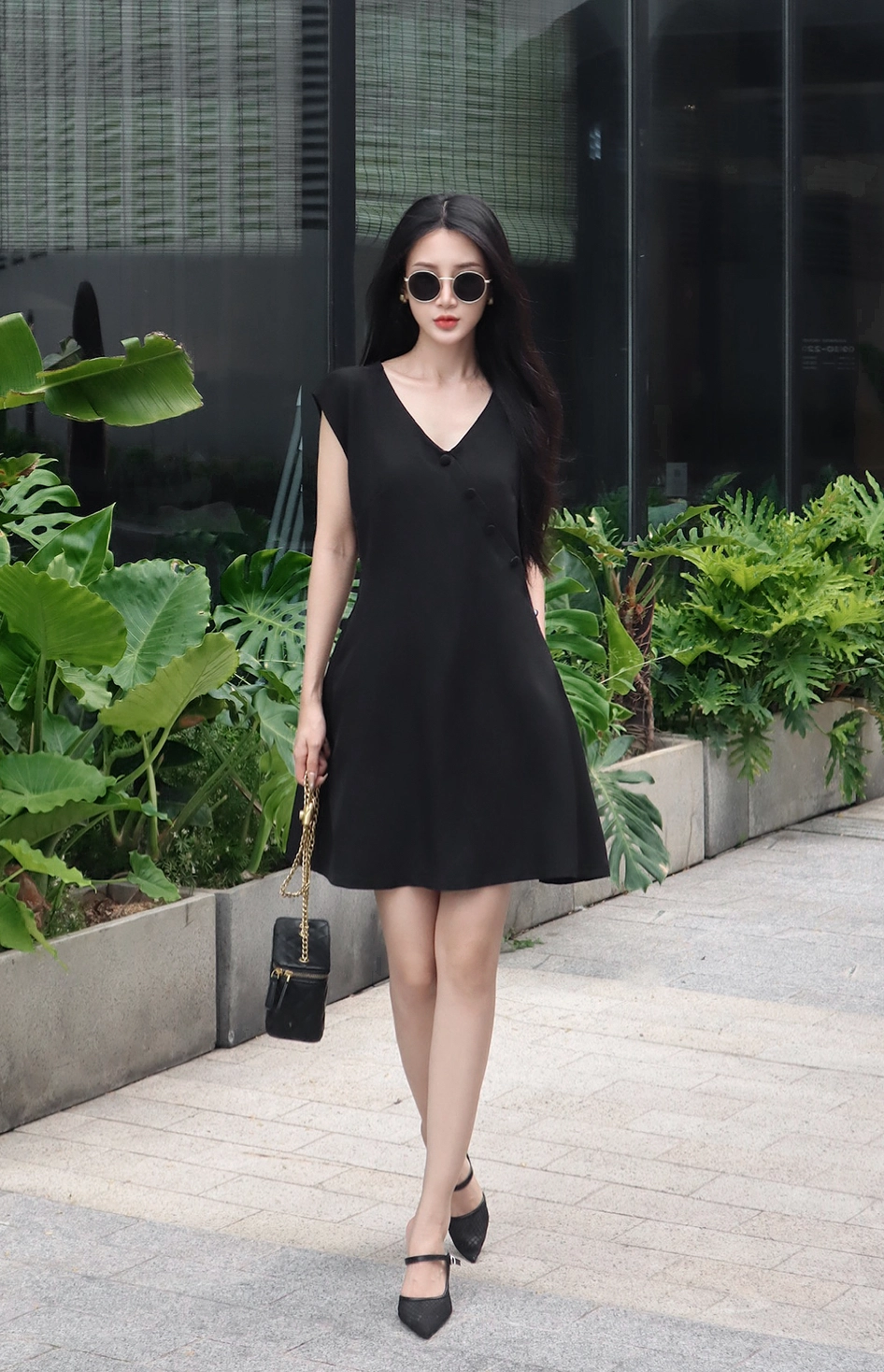 Váy đen không tay cổ V vạt chéo